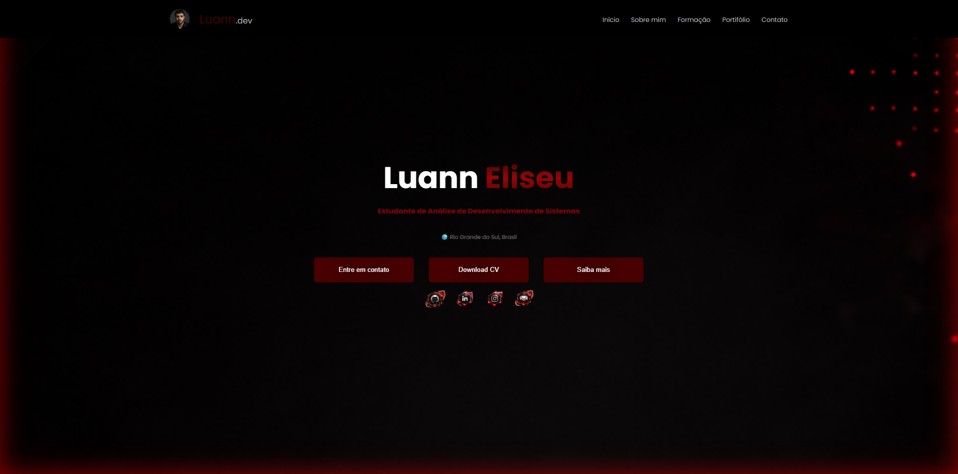 > Atualmente estou construindo uma base sólida em criação de interface web com banco de dados, boas práticas e desenvolvimento de aplicações pensadas para usuários.